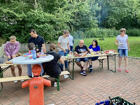 Zum gemeinsamen Jahresabschluss traf sich am 17.12.24 auch noch der Hauptvorstand im Hallenbad. Dazu eingeladen waren alle aktiven Mitglieder des Vereins. Mit selbst mitgebrachten Leckereien und verschiedenen warmen und kalten Getränken machte es sich also eine bunt gemischte Gruppe auf der Terrasse gemütlich. Der gemeinsame Austausch über das vergangene Jahr und der Blick in Richtung des neuen, hat allen Teilnehmenden viel Freude bereitet.