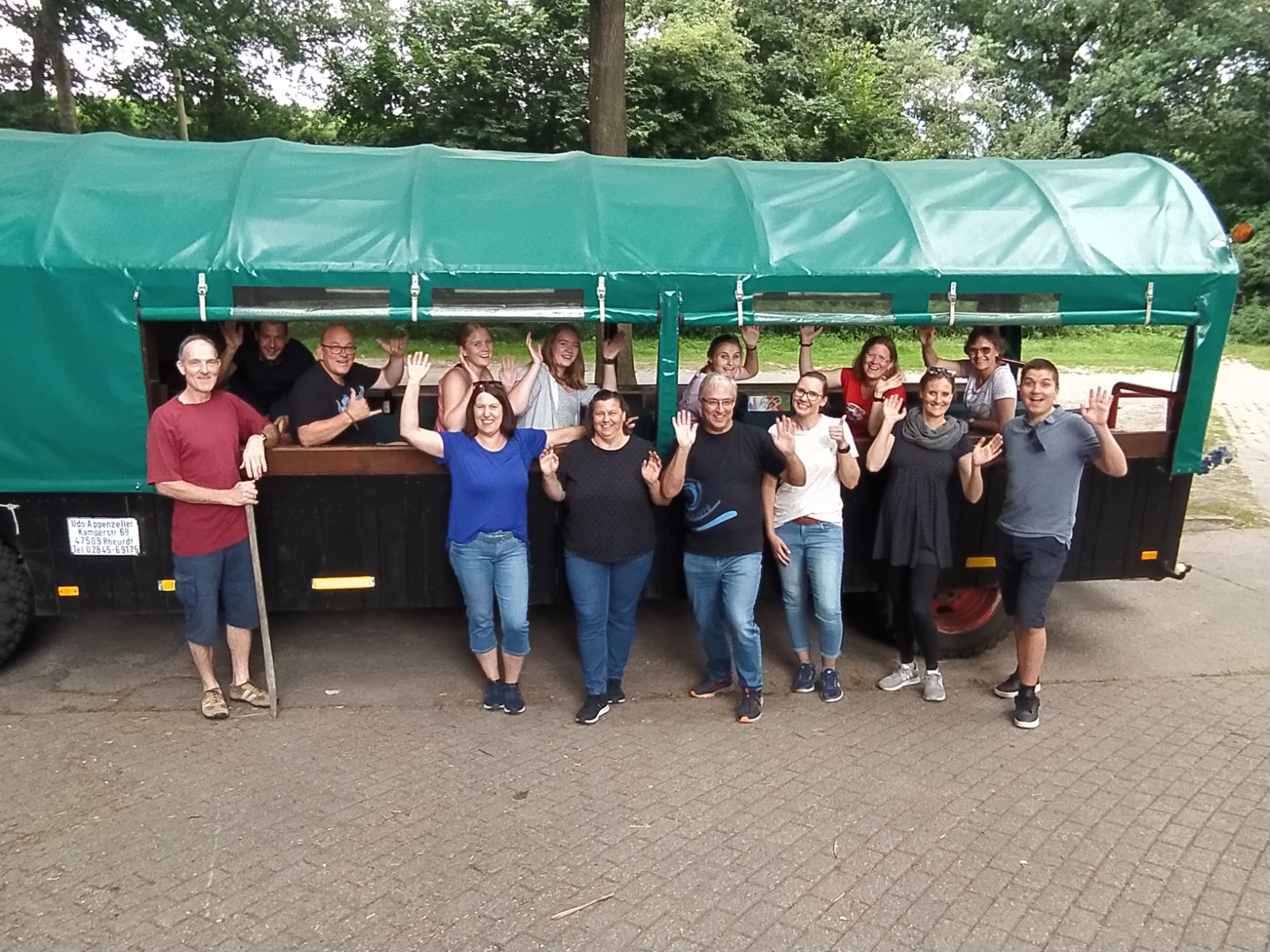 Am 9. Juli unternahm unser Vorstand eine gemütliche Planwagentour durch die Rheurdter Ortsteile. Unser Vorsitzender Andreas Mölders hatte ein abwechslungsreiches und gelungenes Programm organisiert. Unter anderem führte uns Karl Goetzens über den Milchviehbetrieb, und Wilhelm Helmanns lud zu einer Kostprobe seiner edlen Schnäpse und Liköre in seiner Brennerei ein.